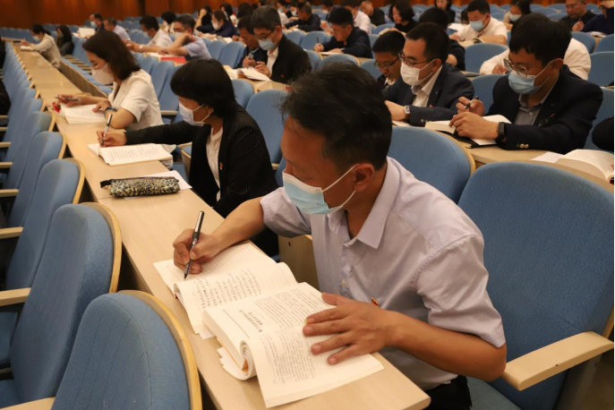 领学结束后,与会人员开展集中自学。大家静下心、拿起笔,心无旁骛、聚精会神,认真学习《习近平著作选读》第一卷,原原本本读、逐字逐句悟、仔仔细细记,并联系自己的工作实际,从党的创新理论中找思路、找遵循、找方法。
